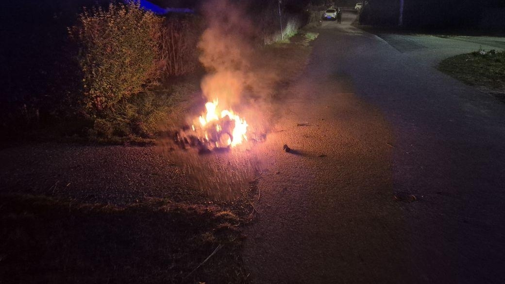 Nach dem Ablöschen mittels Schnellangriffseinrichtung und Nachkontrolle mit der Wärmebildkamera konnte der Einsatz an die ebenfalls alarmierte Polizei übergeben werden.